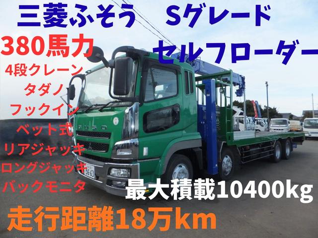セルフローダー 回送車 積載量10400kg 4段クレーン タダノ フックイン 4.9トン吊り 荷台790×247 380馬力 ロングジャッキ リアジャッキ ベット式 バックカメラ 排ガス適合車 NO・15