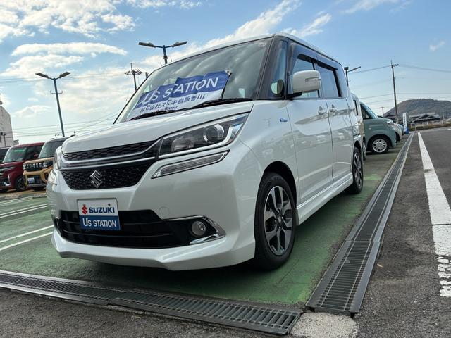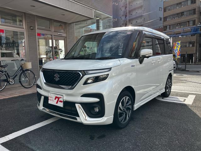 ハイブリッドMV 禁煙車 純正ナビ 衝突軽減 電動スライドドア 全周囲カメラ 運転席シートヒーター スマートキー LEDヘッド クルーズコントロール 純正15インチAW 車線逸脱警報 オートライト オートエアコン ソリオバンディット 愛知県