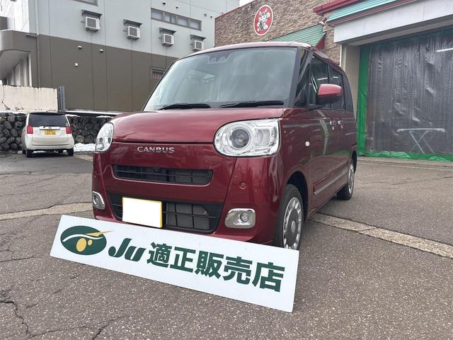 ストライプスG 届出済未使用車 両側電動スライドドア 衝突軽減装置 コーナーセンサー 前席シートヒーター LEDヘッド/フォグ オートハイビーム オートライト オートエアコン スマートキー アイドリングストップ ムーヴキャンバス 新潟県