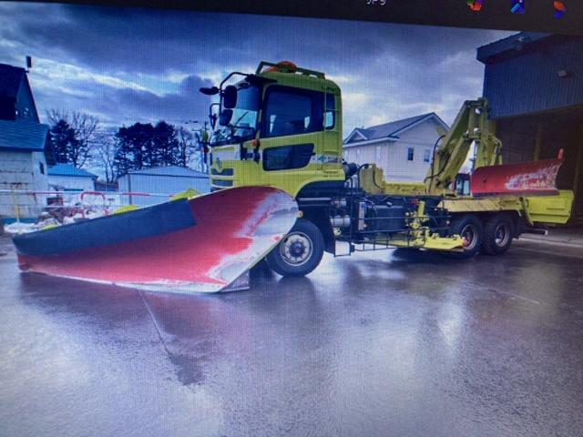 ヒアブクレーン付平ボディ 上物ヒアブ製 F105ZT ログリフト 林業仕様 360度回転グラップル付 トップシート 2デフ 積載8.6t 荷台寸法583×248 スタンションホール&スタンションバー 13636[ヒアブクレーン付平ボディ] R1 クオン