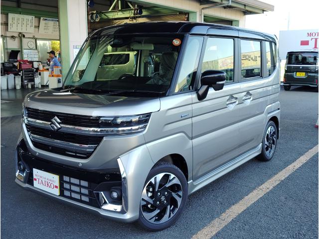 ハイブリッドXSターボ ターボ 届出済未使用車 両側電動ドア 衝突被害軽減システム レーダークルーズ ハーフレザーシート コーナーセンサー スマートキー LEDヘッド HIDヘッド 車線逸脱警報 オートライト スペーシアカスタム 静岡県