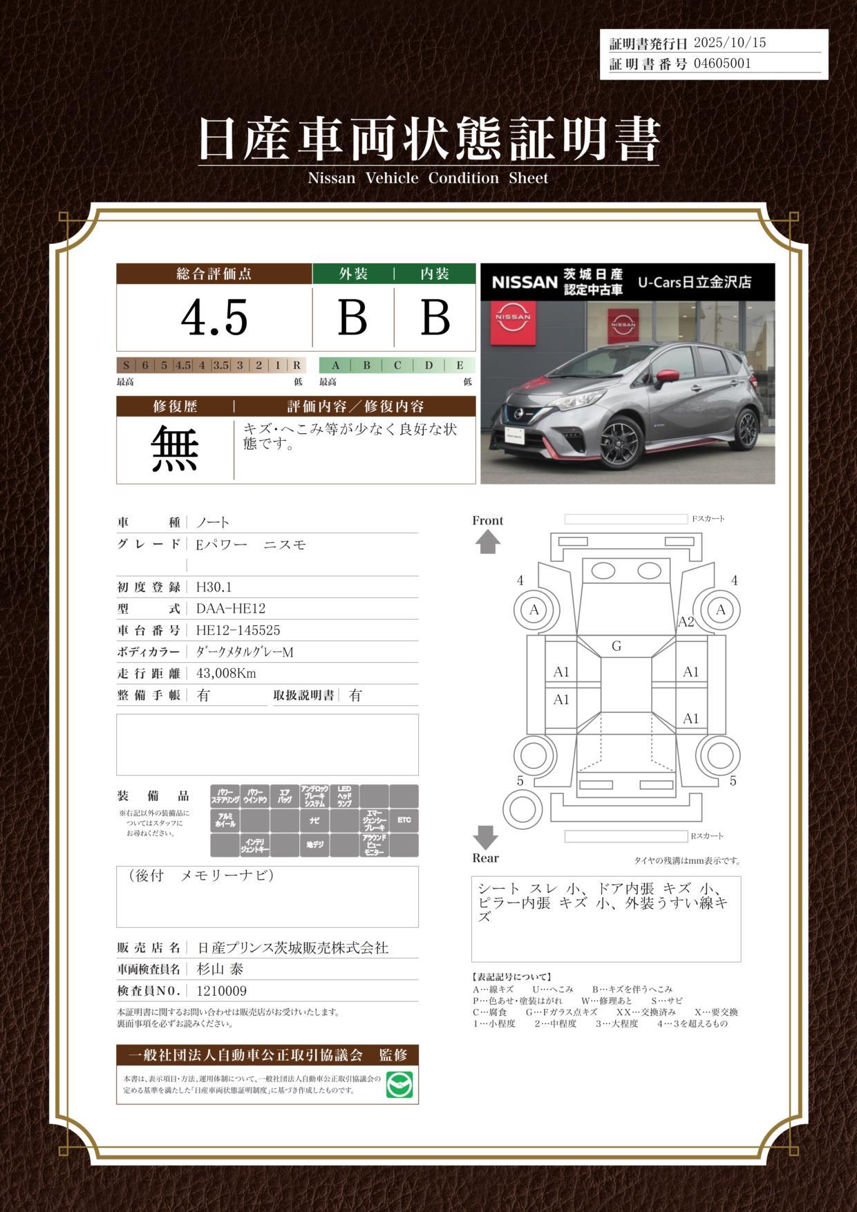車両保証(ノート e-パワーニスモ:茨城日産自動車(株)U-Cars日立金沢店)