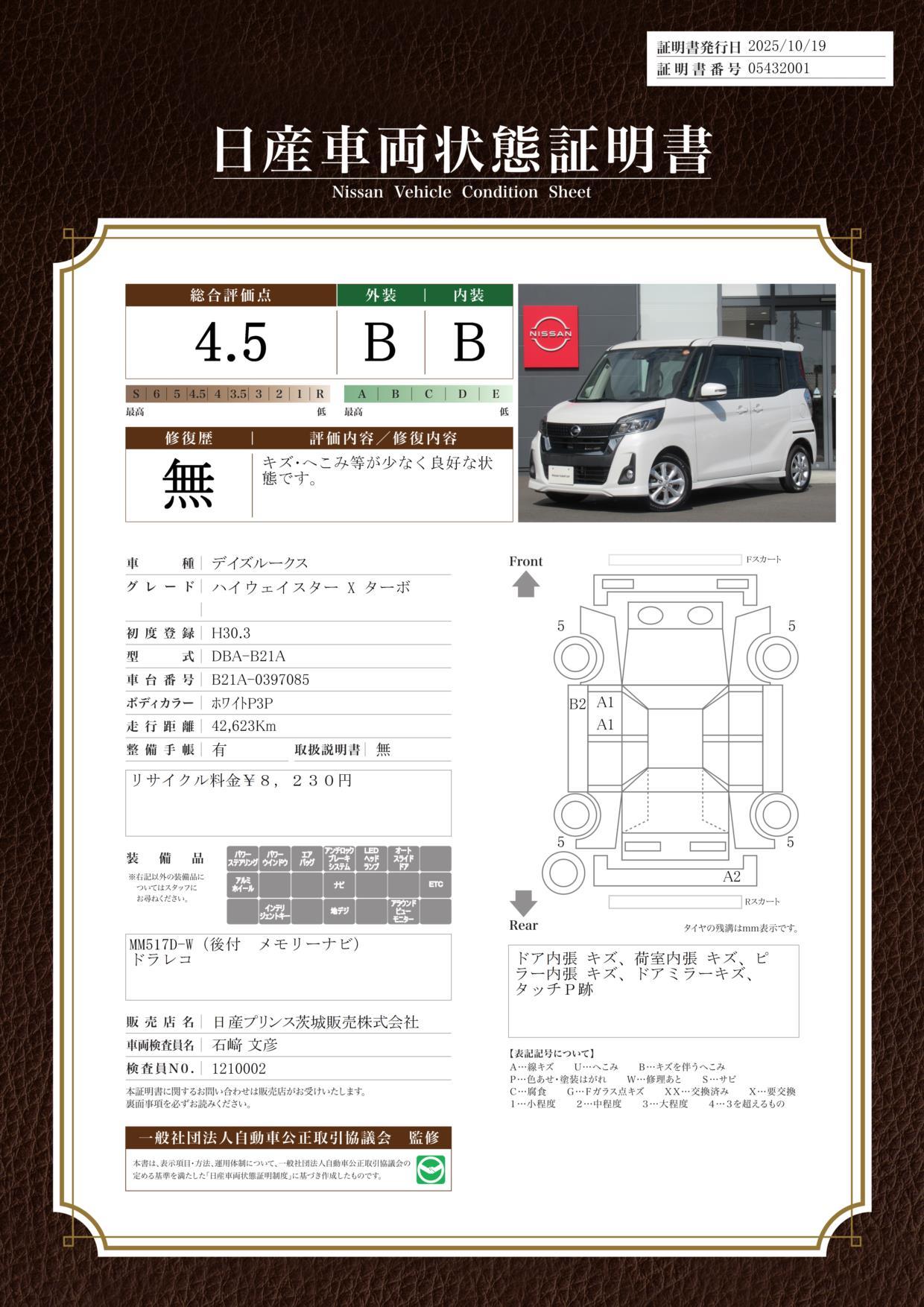 | 車両状態評価書 | ※クリックすると開きます![]() |