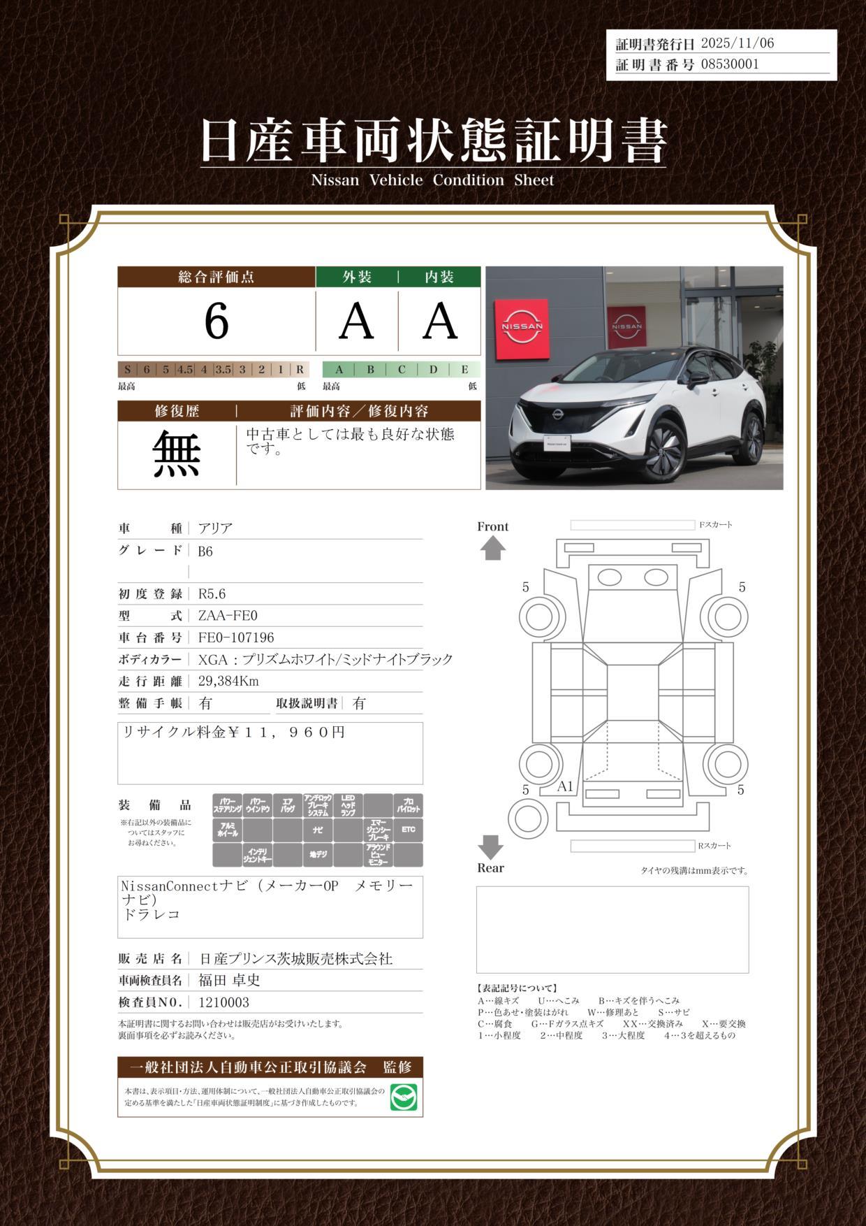 車両保証(アリア B6:茨城日産自動車(株)U-Cars日立金沢店)