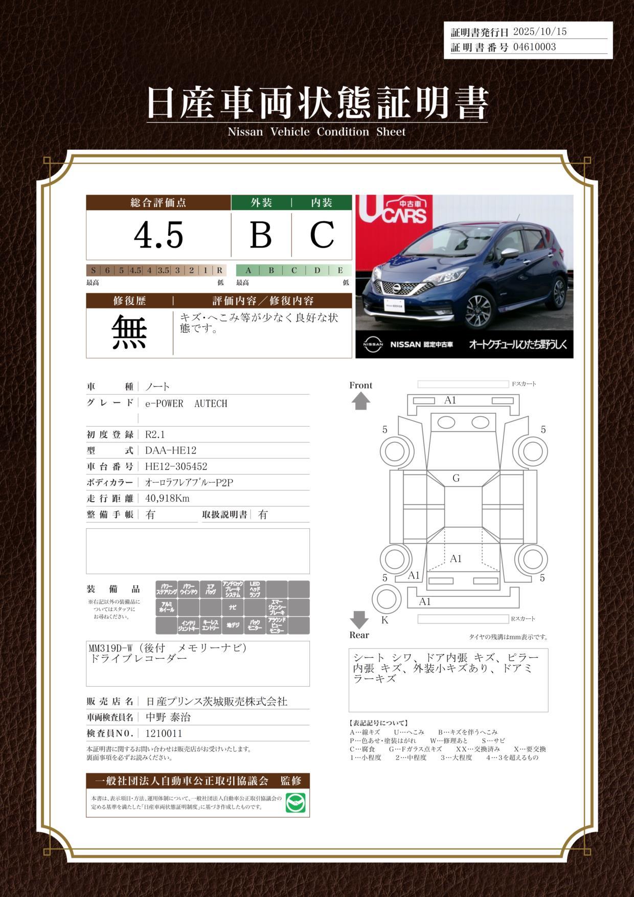 車両保証(ノート e-パワーオーテック:茨城日産自動車株式会社オートクチュールひたち野うしく)