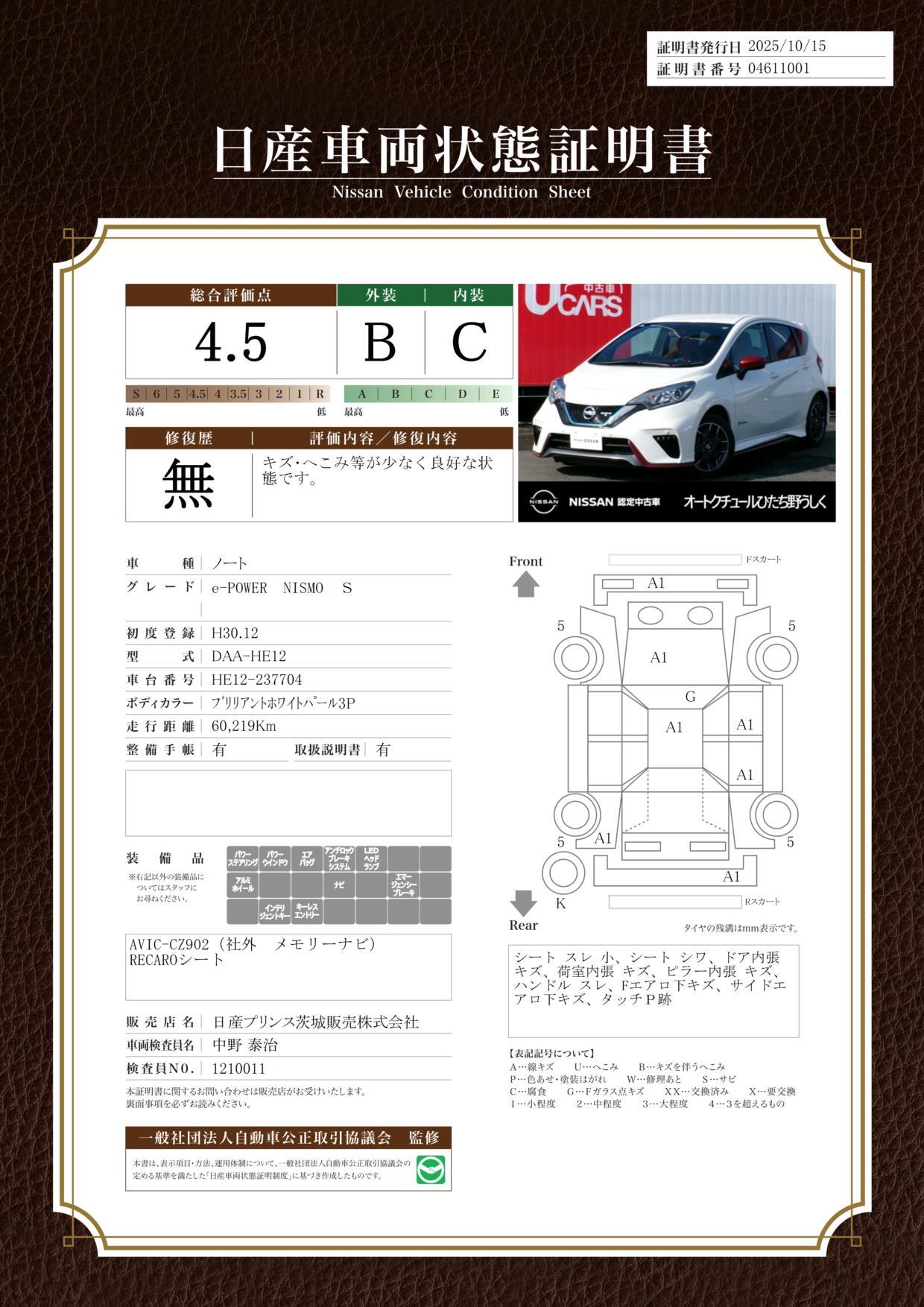車両保証(ノート e-パワーニスモ S:茨城日産自動車株式会社オートクチュールひたち野うしく)