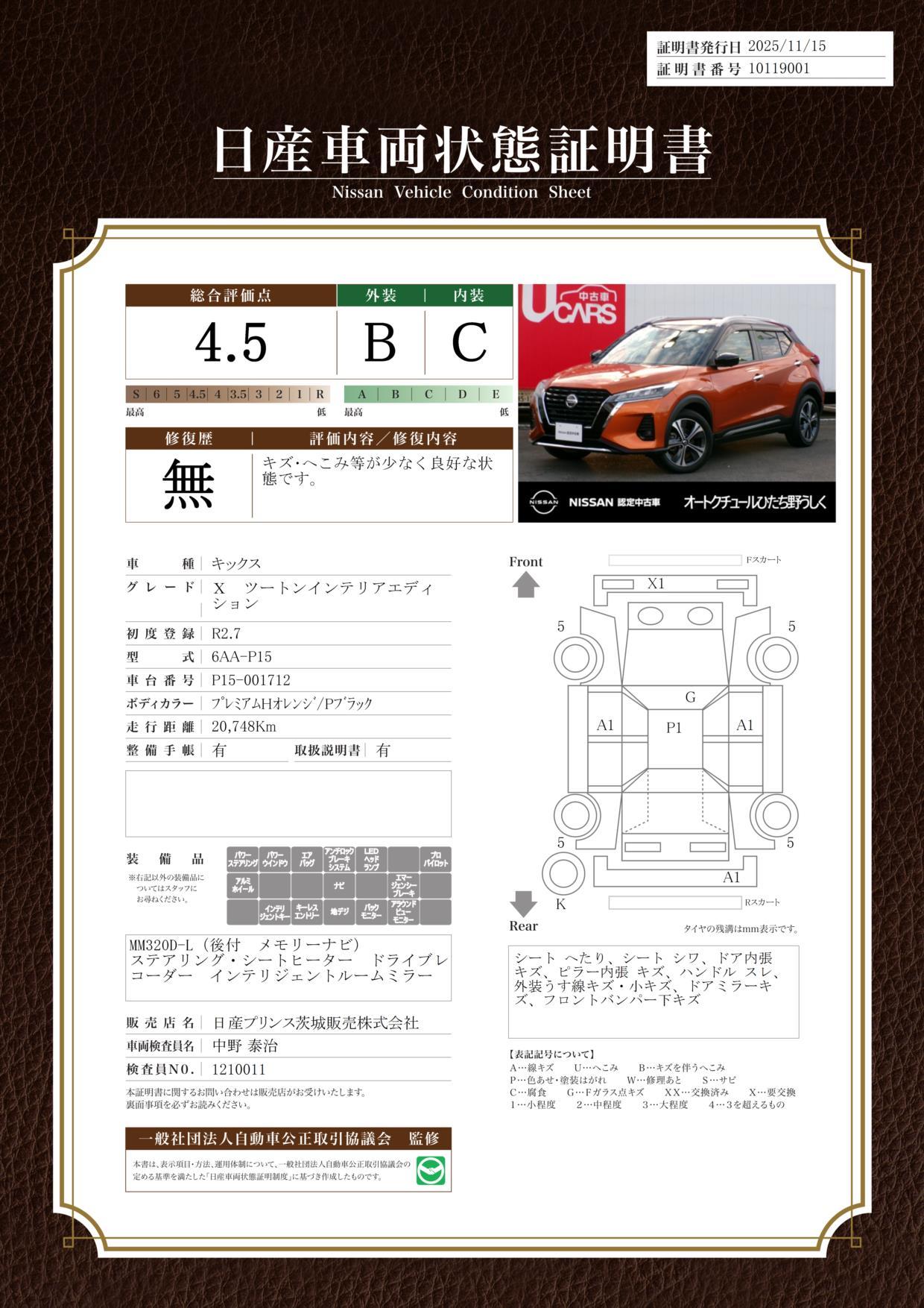 車両保証(キックス X ツートーンインテリアエディション:茨城日産自動車株式会社オートクチュールひたち野うしく)