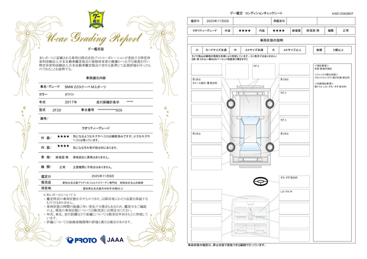 車両状態(2シリーズ 220iクーペ Mスポーツ)