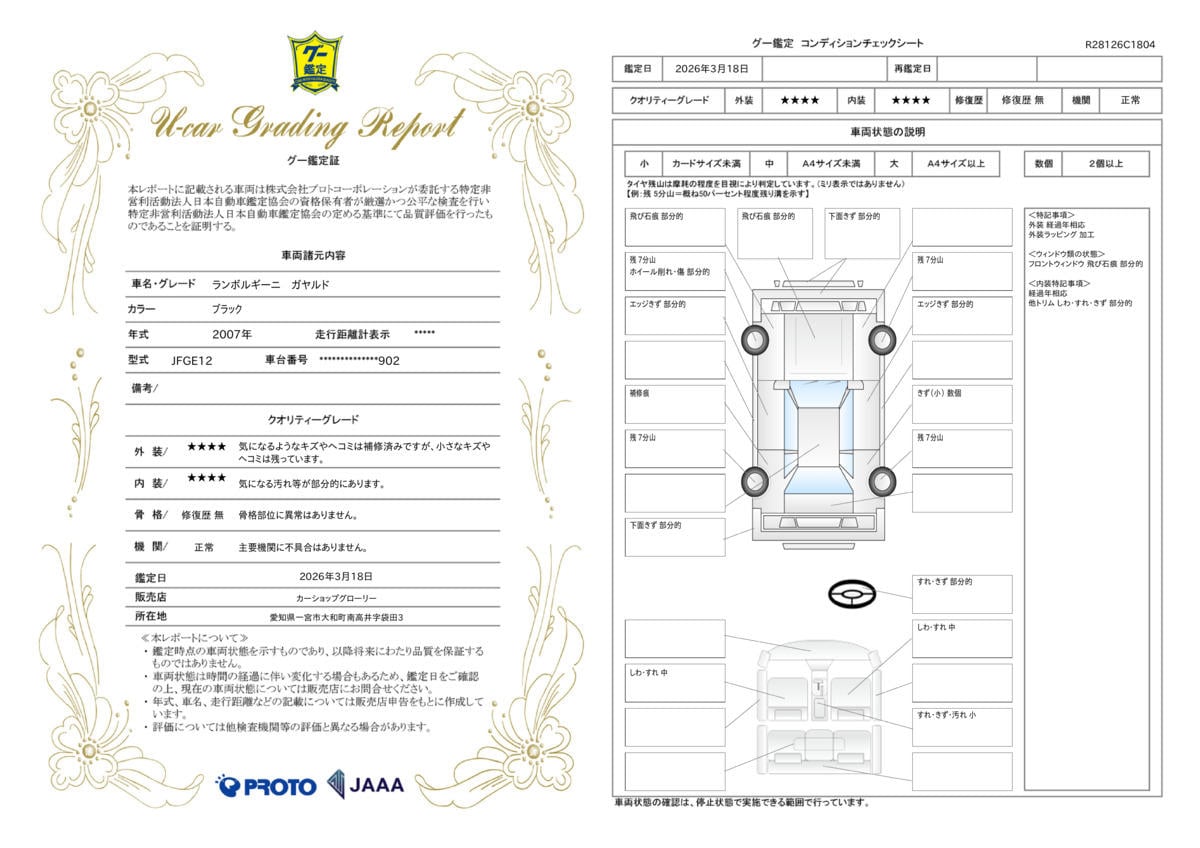 車両保証(ガヤルド その他/独自仕様/表記なし:カーショップグローリー)