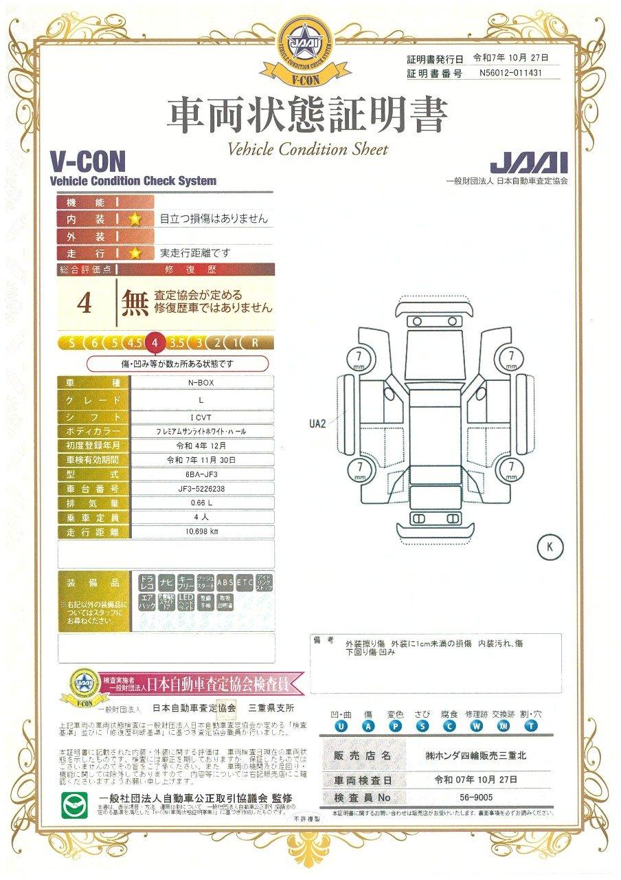 車両保証(N-BOX L:Honda Cars 三重北 U-Select 鈴鹿)