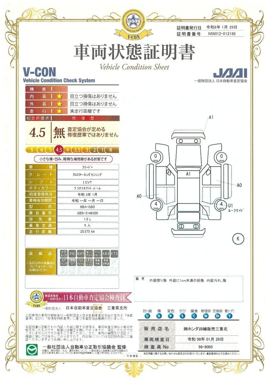 車両保証(フリード+ クロスター・ホンダセンシング:Honda Cars 三重北 U-Select 鈴鹿)