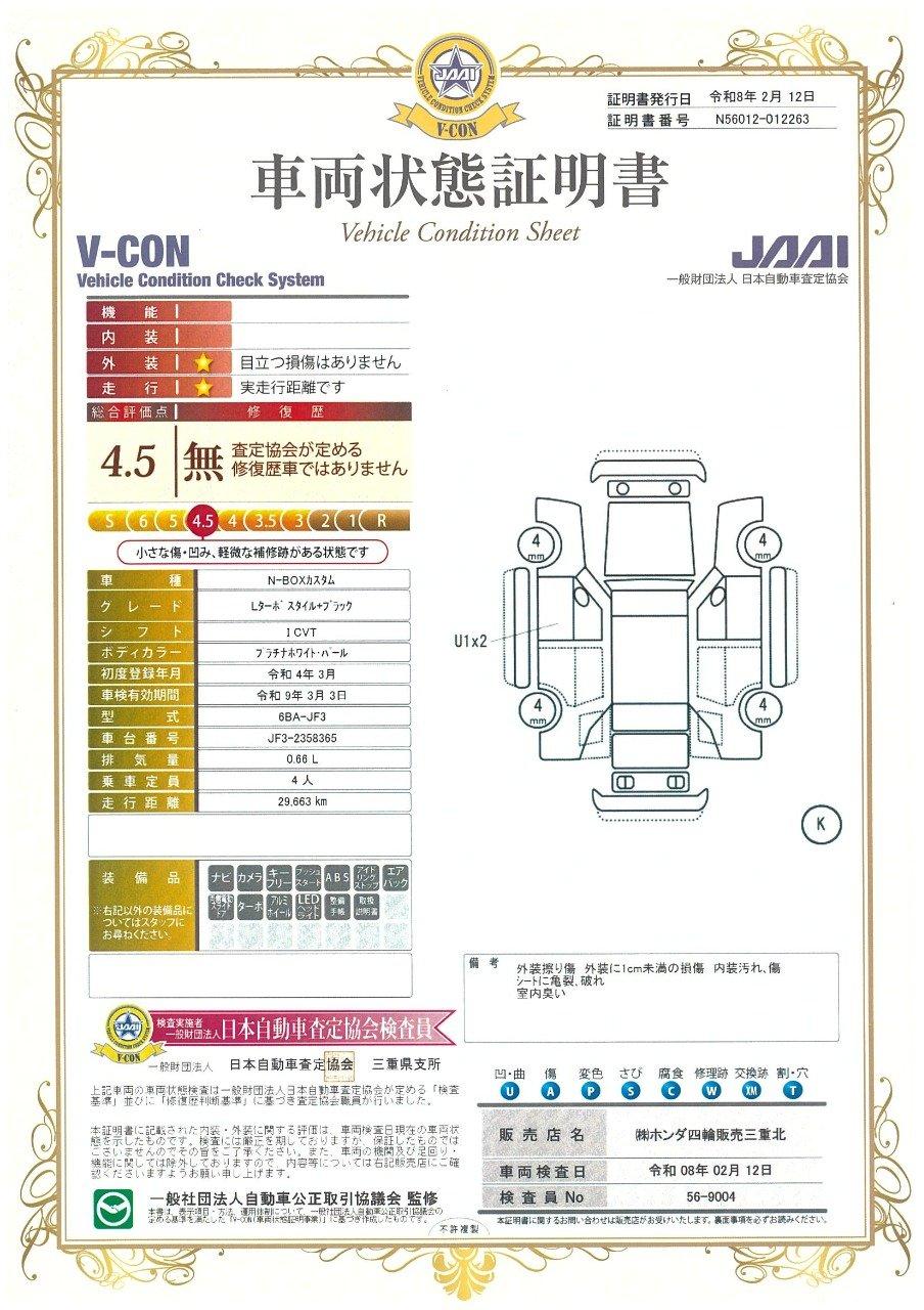 車両保証(N-BOXカスタム Lターボ スタイル+ブラック:Honda Cars 三重北 U-Select 鈴鹿)