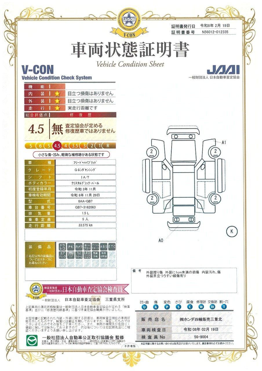 車両保証(フリード+ハイブリッド ハイブリッドG・ホンダセンシング:Honda Cars 三重北 U-Select 鈴鹿)