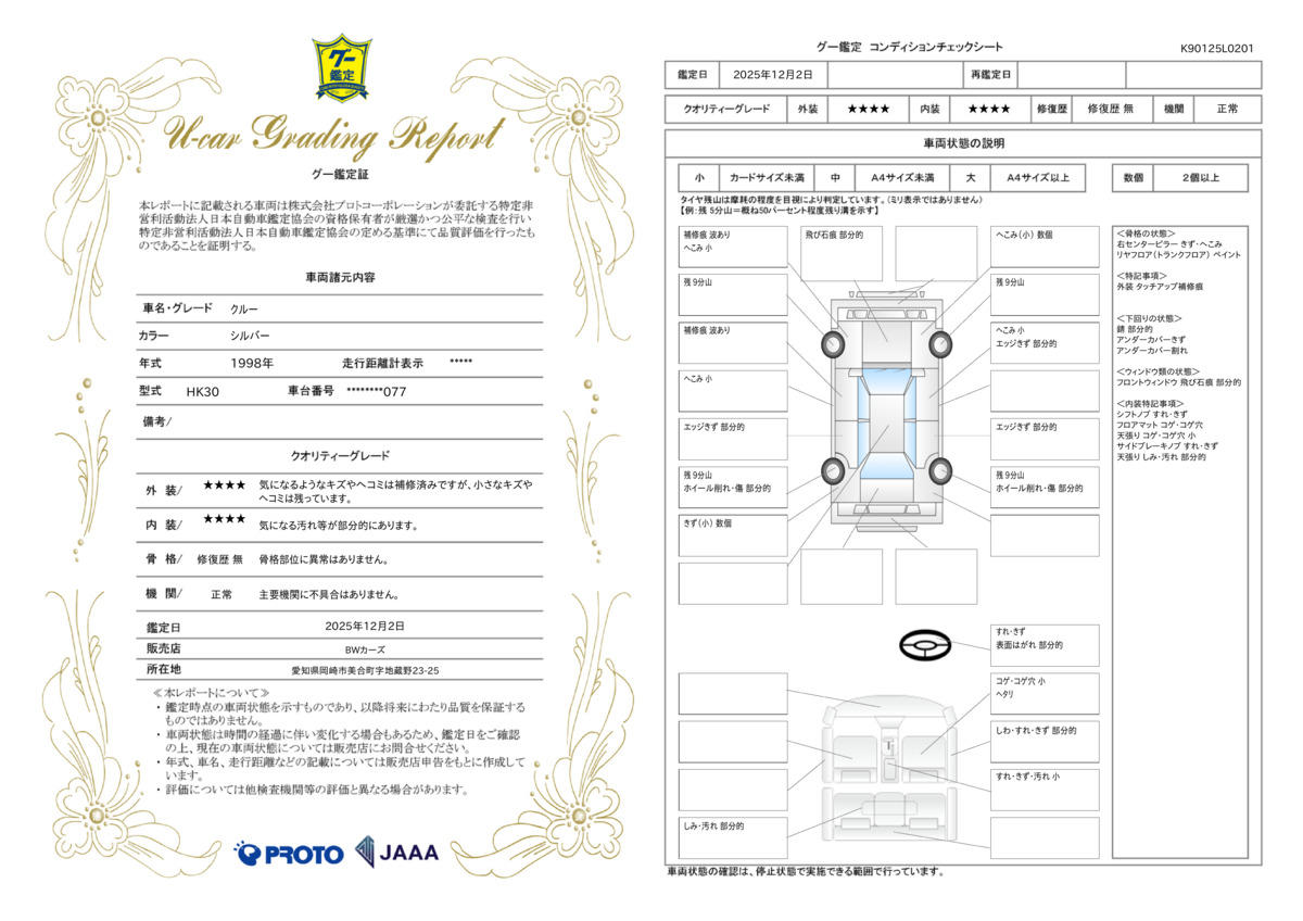 | 車両状態評価書 | ※クリックすると開きます![]() |