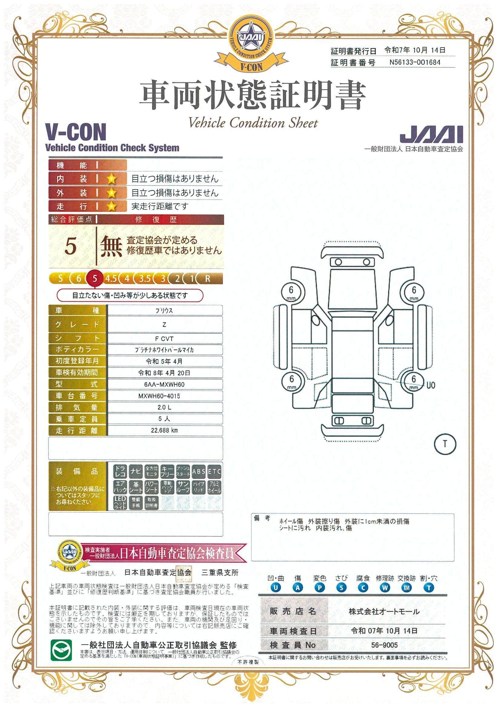 車両保証(プリウス Z:ヴァーサス鈴鹿本店)
