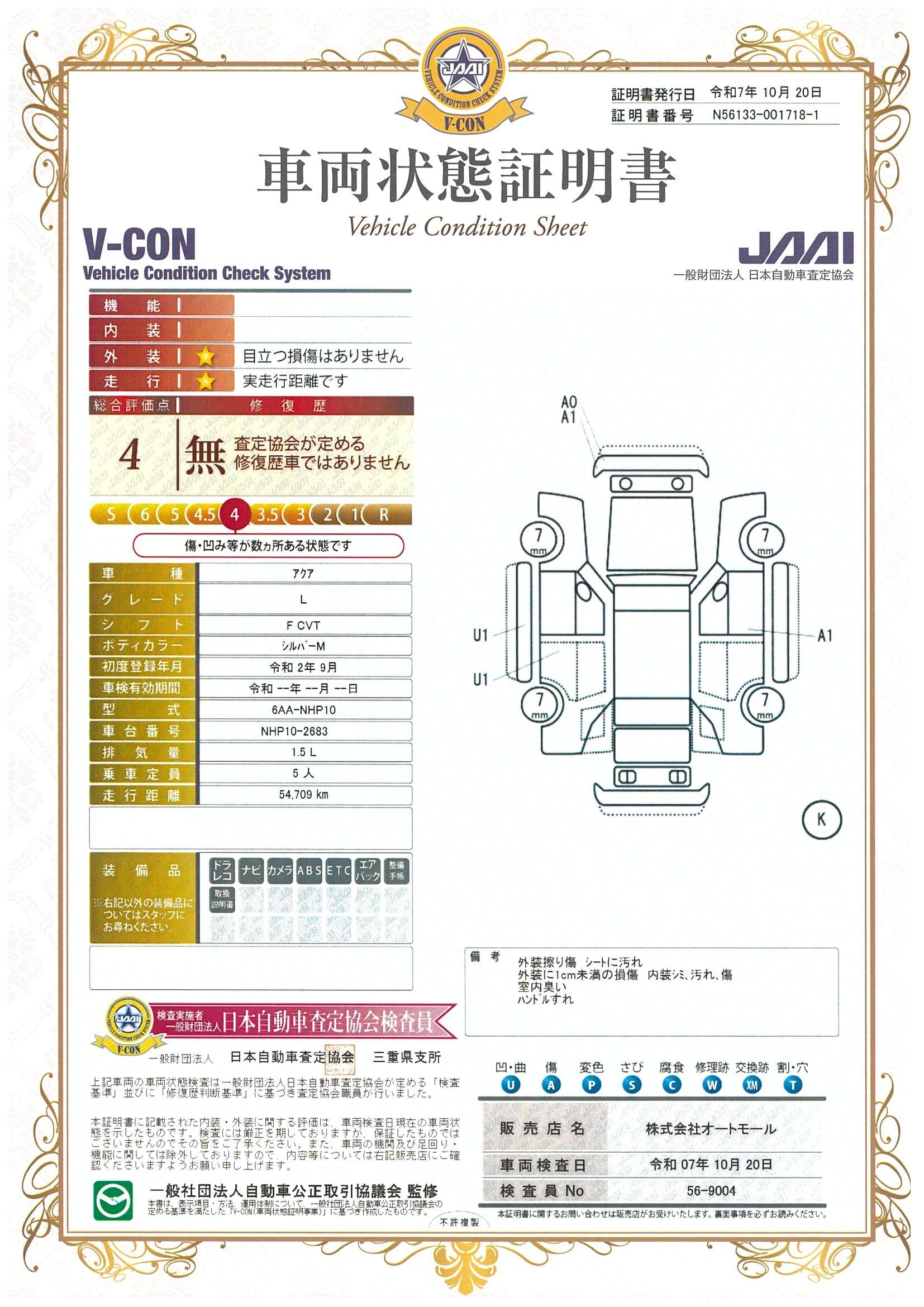 | 車両状態評価書 | ※クリックすると開きます![]() |