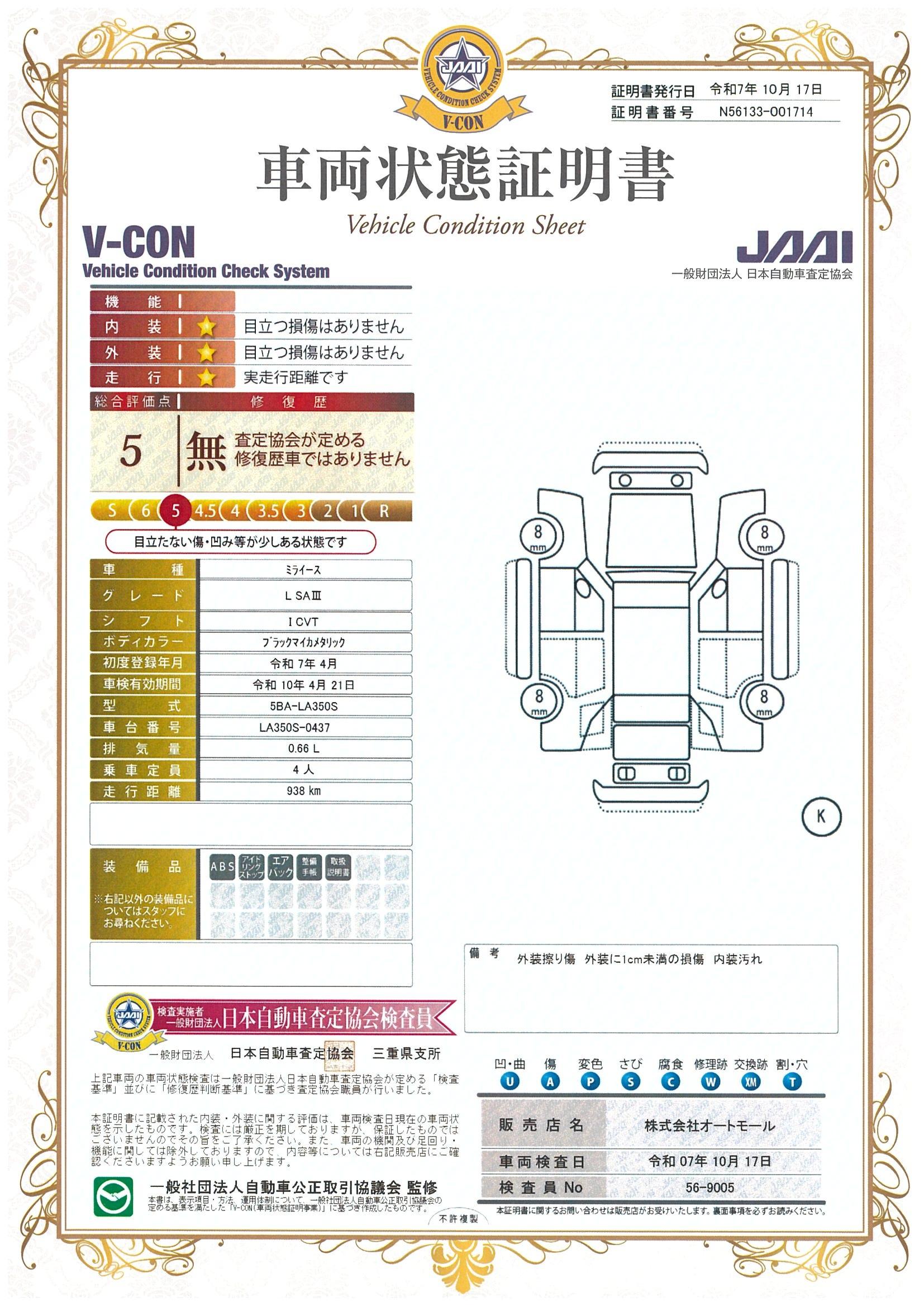 車両保証(ミライース L SAIII:ヴァーサス鈴鹿本店)