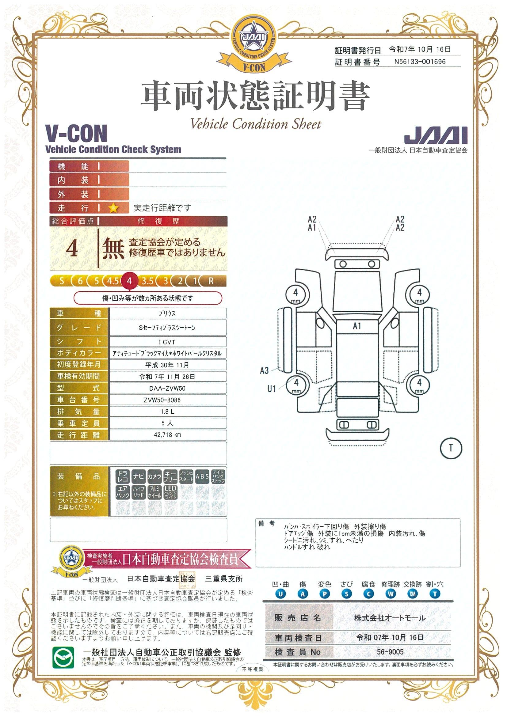 車両保証(プリウス Sセーフティプラス ツートーン:ヴァーサス鈴鹿本店)