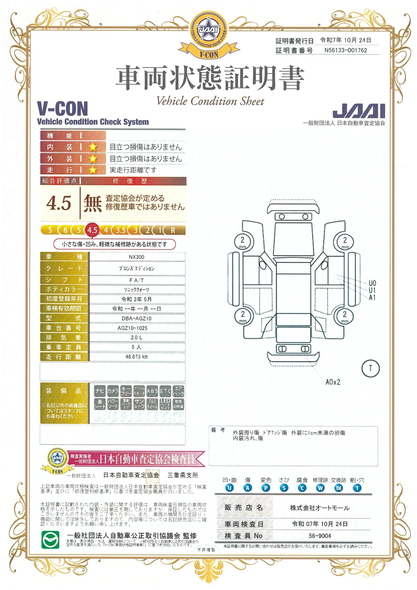 車両状態(NX NX300ブロンズエディション)