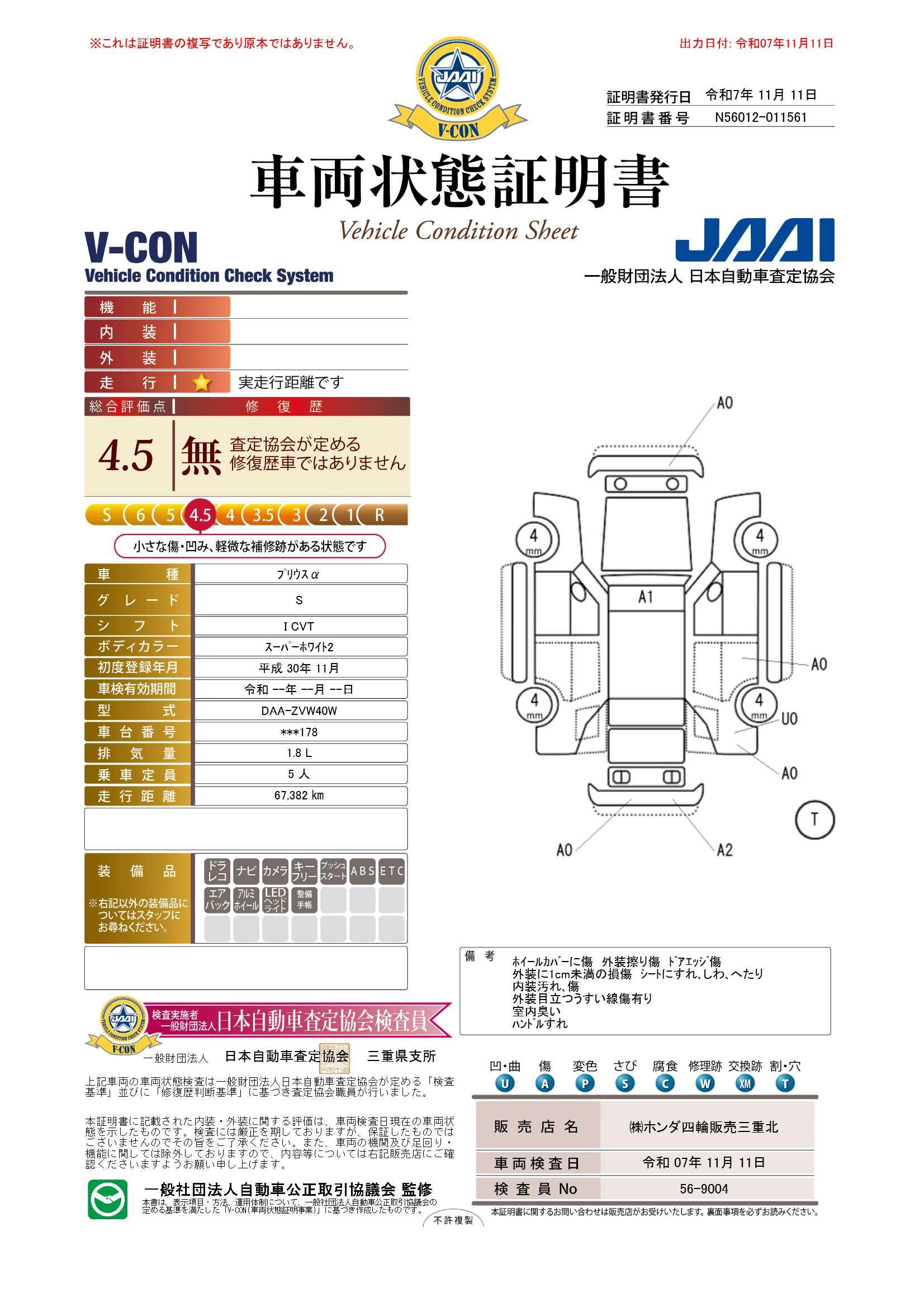 車両保証(プリウスアルファ S:ヴァーサス四日市日永店)