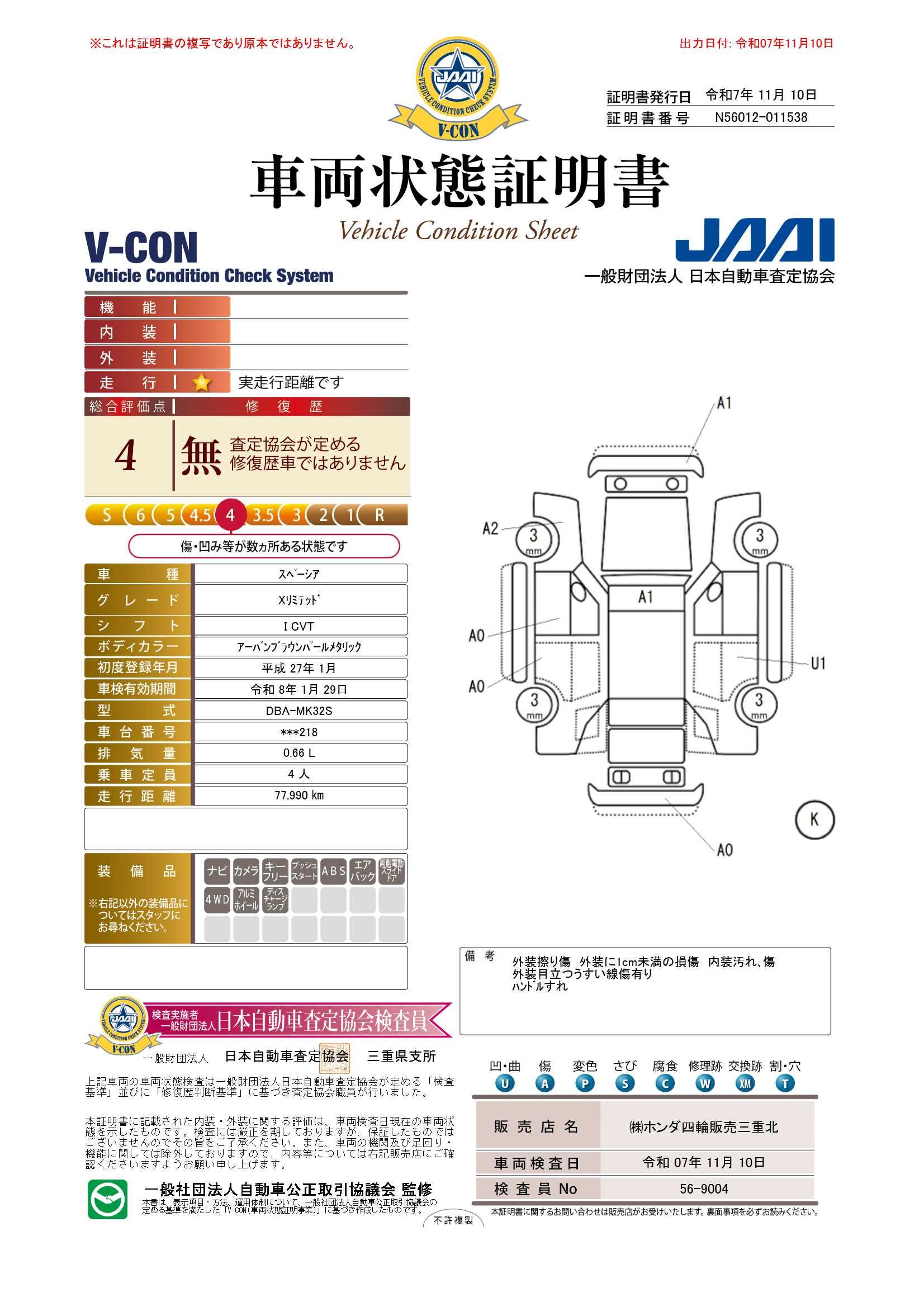 | 車両状態評価書 | ※クリックすると開きます![]() |