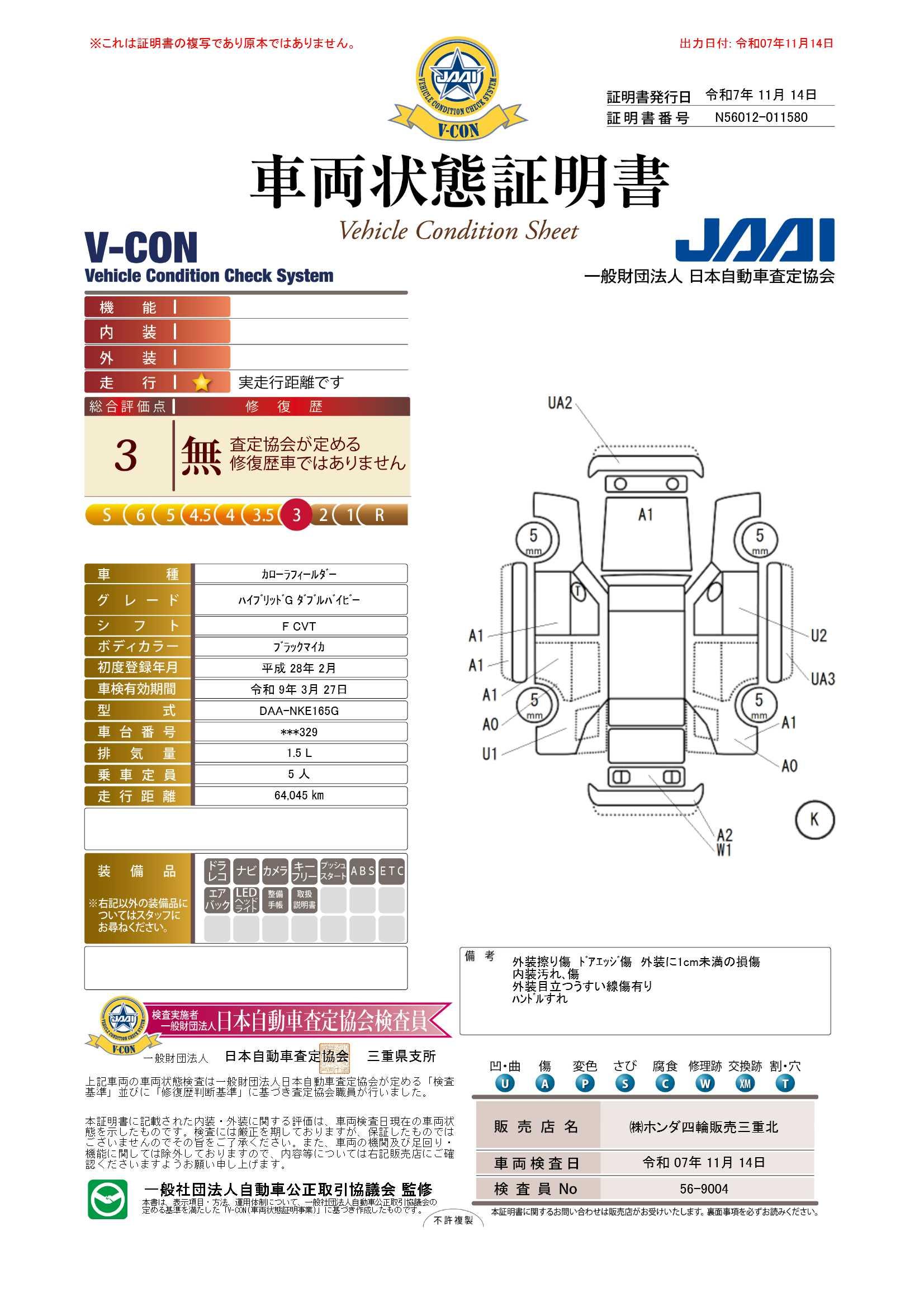 | 車両状態評価書 | ※クリックすると開きます![]() |