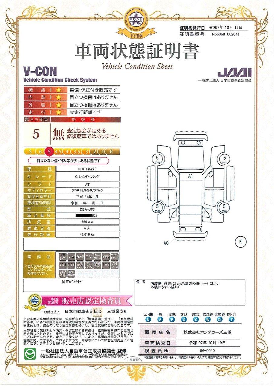 車両状態(N-BOXカスタム G・Lホンダセンシング)