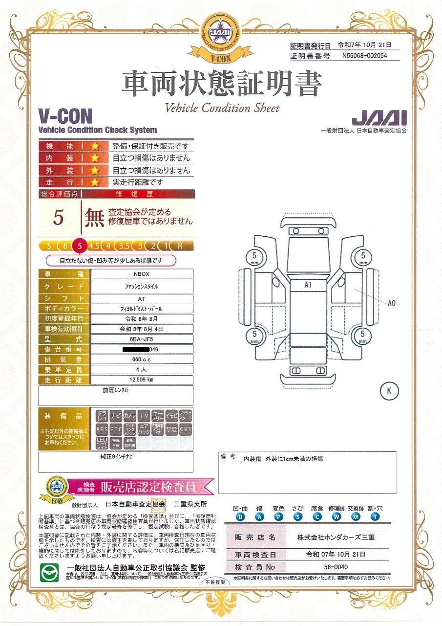 | 車両状態評価書 | ※クリックすると開きます![]() |
