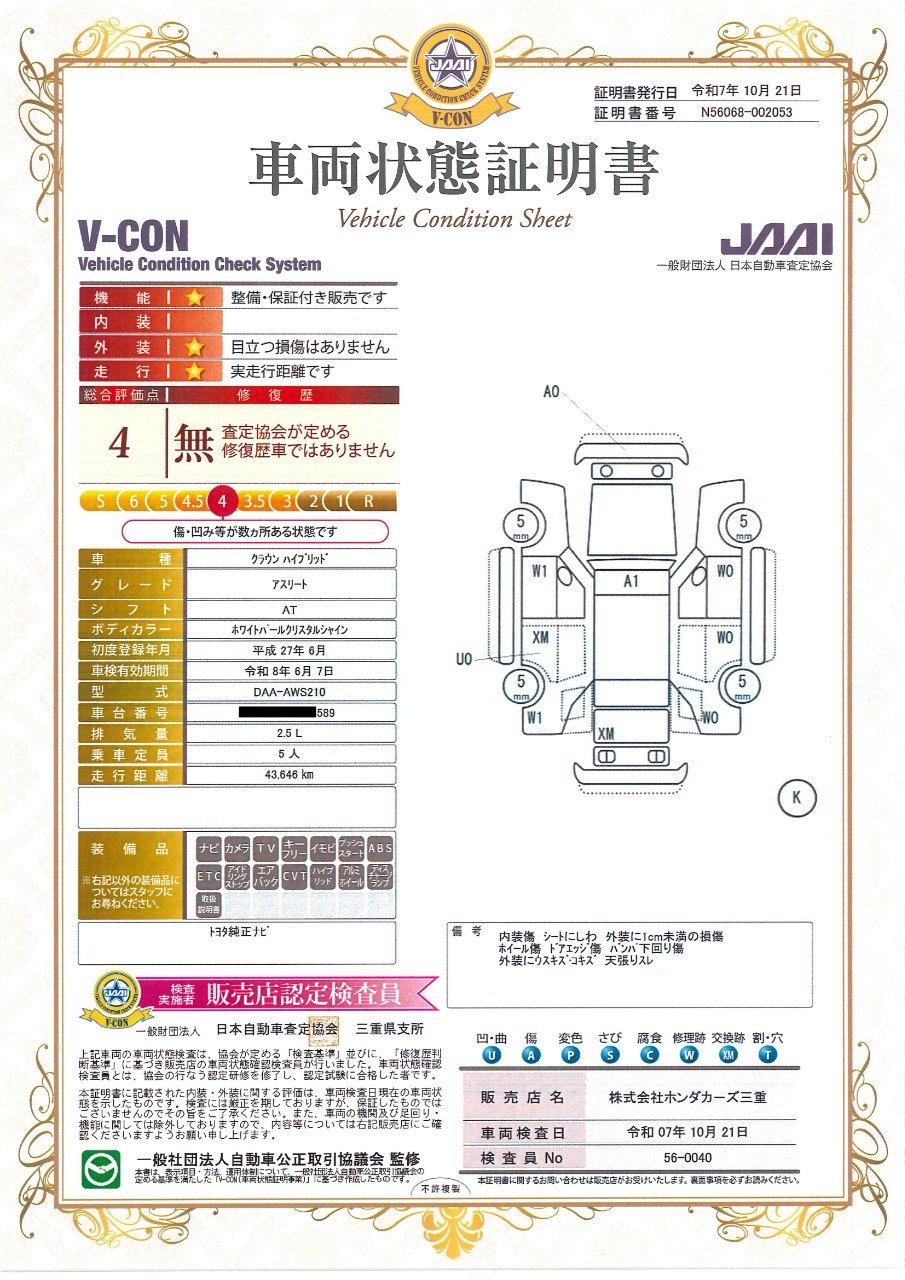 車両保証(クラウンハイブリッド アスリート:HCMモビリティ河芸店)
