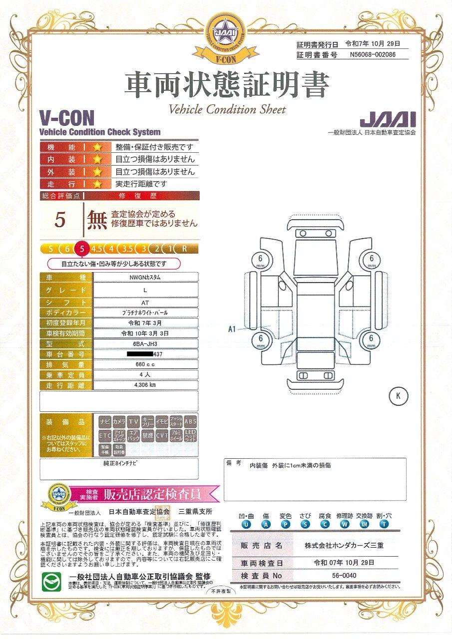 車両保証(N-WGNカスタム L:Honda Cars 三重 伊勢西インター店)