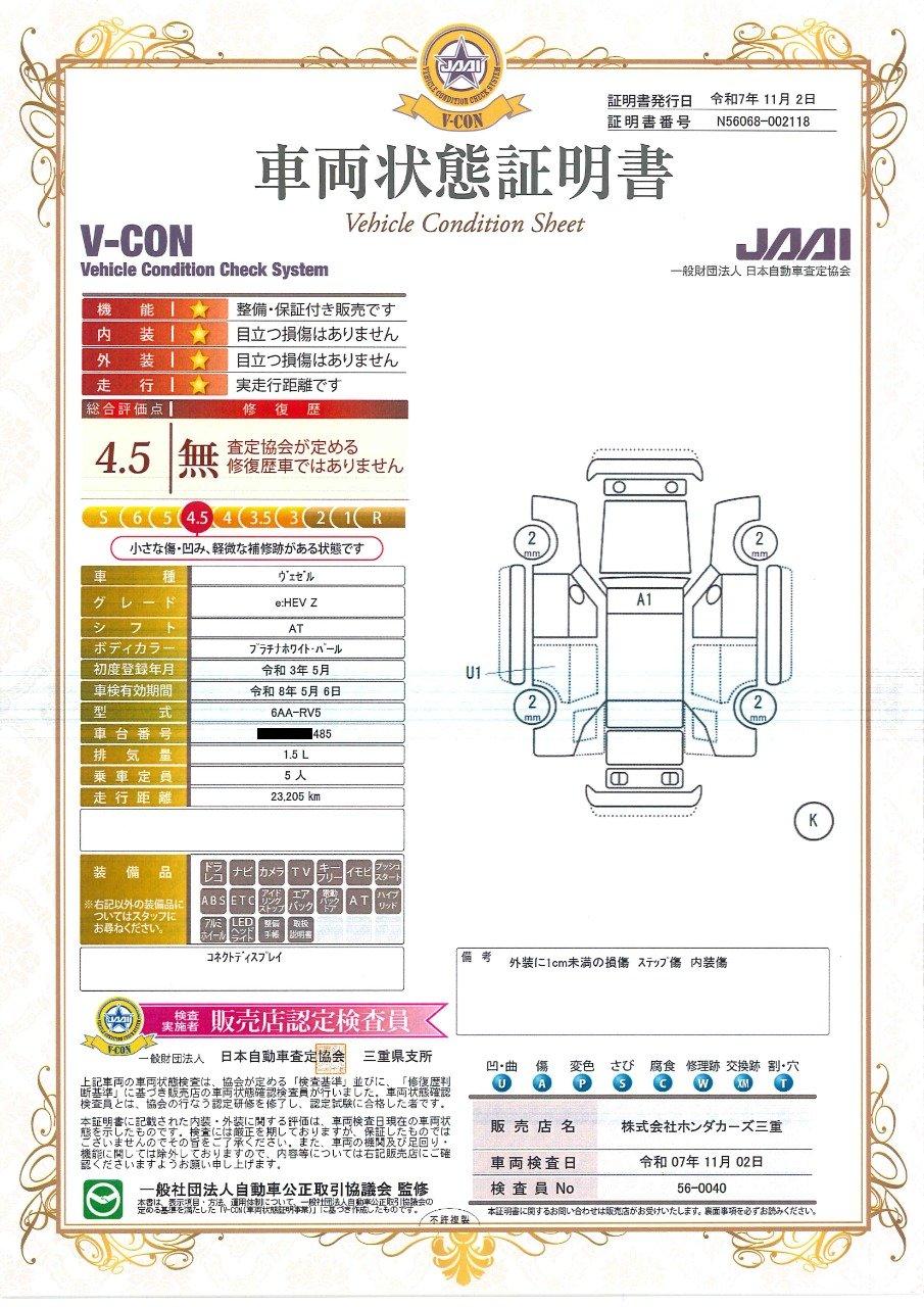 車両保証(ヴェゼル e:HEV Z:Honda Cars 三重 津中勢バイパス店)