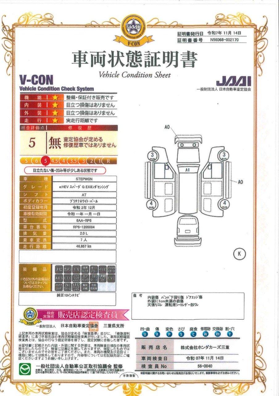 車両状態(ステップワゴンスパーダ e:HEVスパーダ G・EX ホンダセンシング)