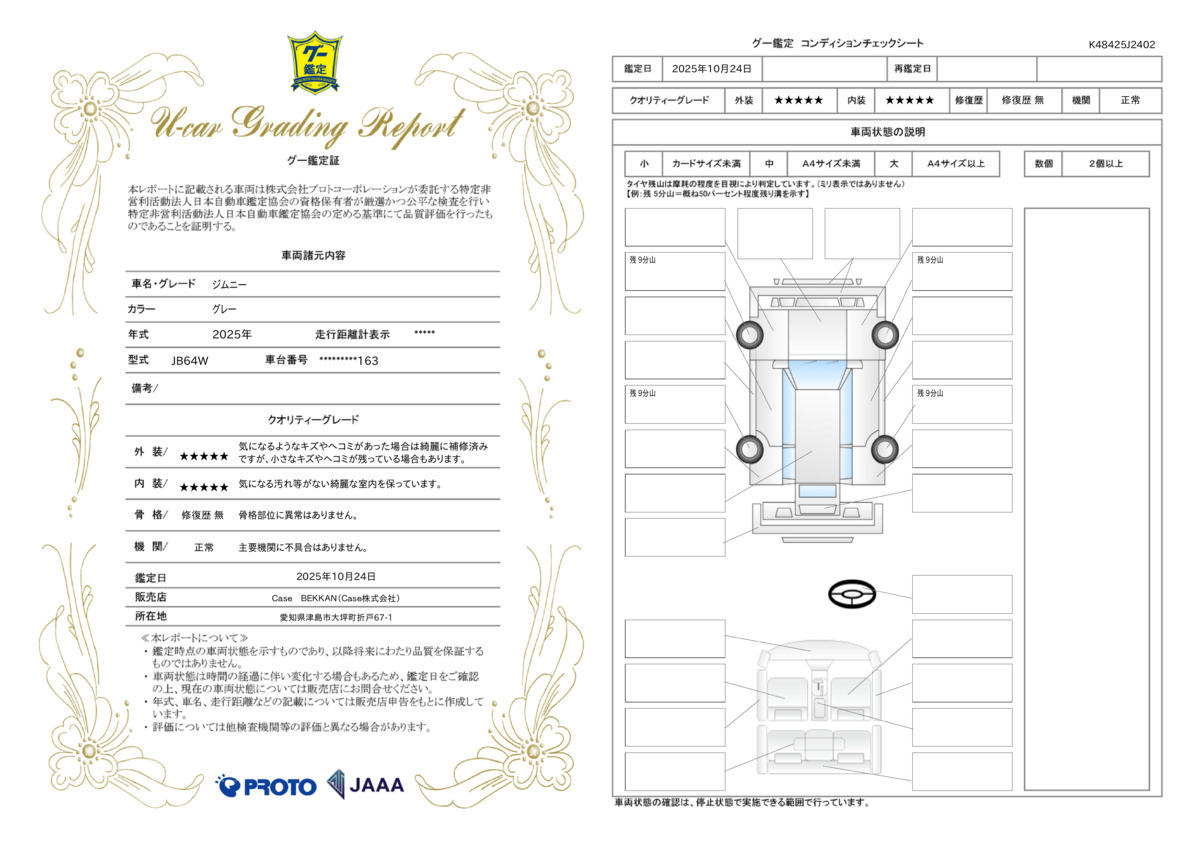 | 車両状態評価書 | ※クリックすると開きます![]() |