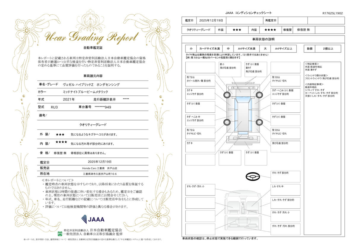 | 車両状態評価書 | ※クリックすると開きます![]() |