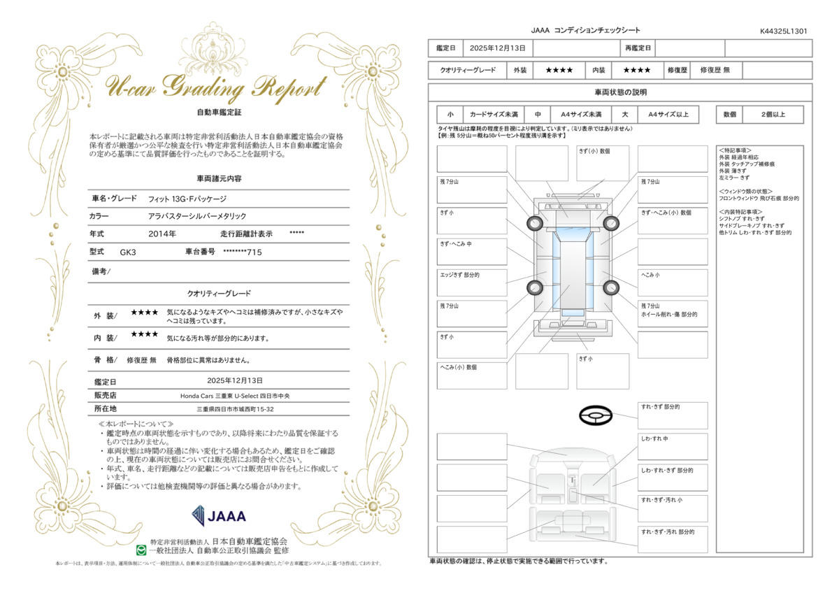 車両保証(フィット 13G・Fパッケージ:株式会社ホンダ四輪販売中京 U-Select四日市中央)