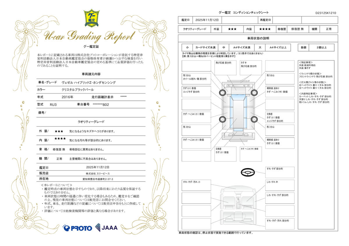 車両保証(ヴェゼル ハイブリッドZ・ホンダセンシング:ACTION1 豊田店)