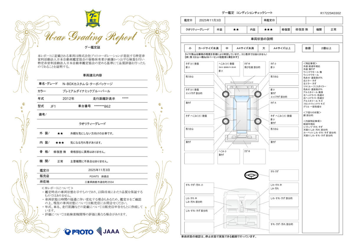 | 車両状態評価書 | ※クリックすると開きます![]() |