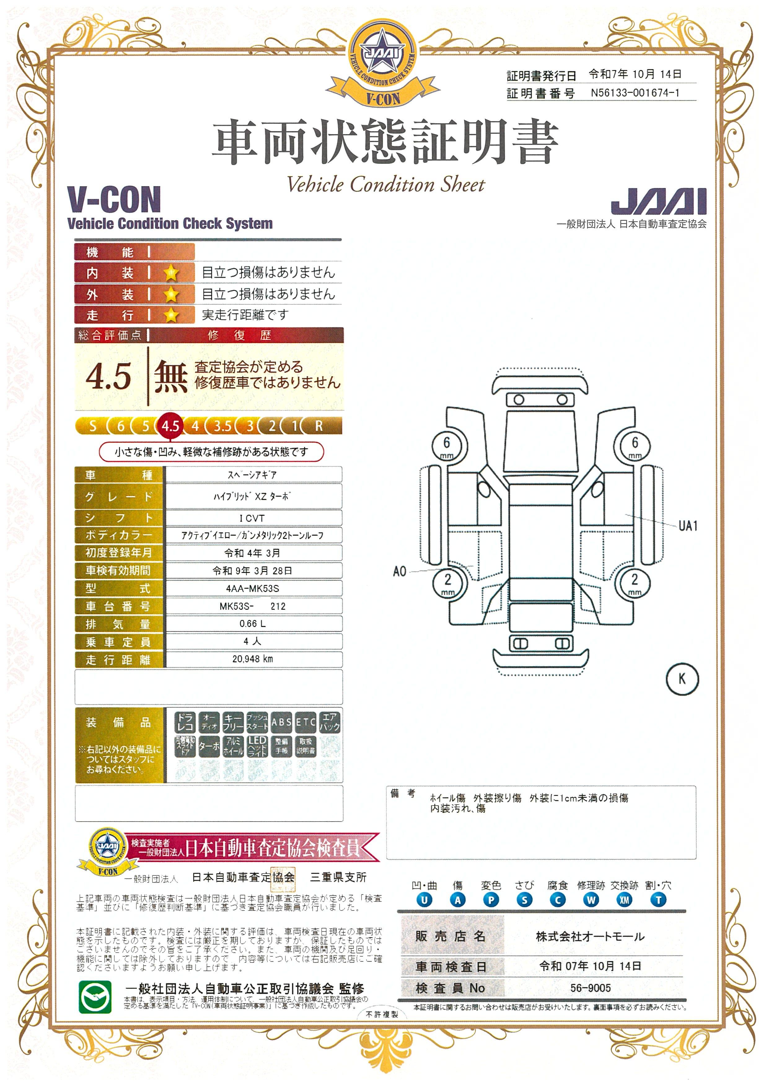 | 車両状態評価書 | ※クリックすると開きます![]() |