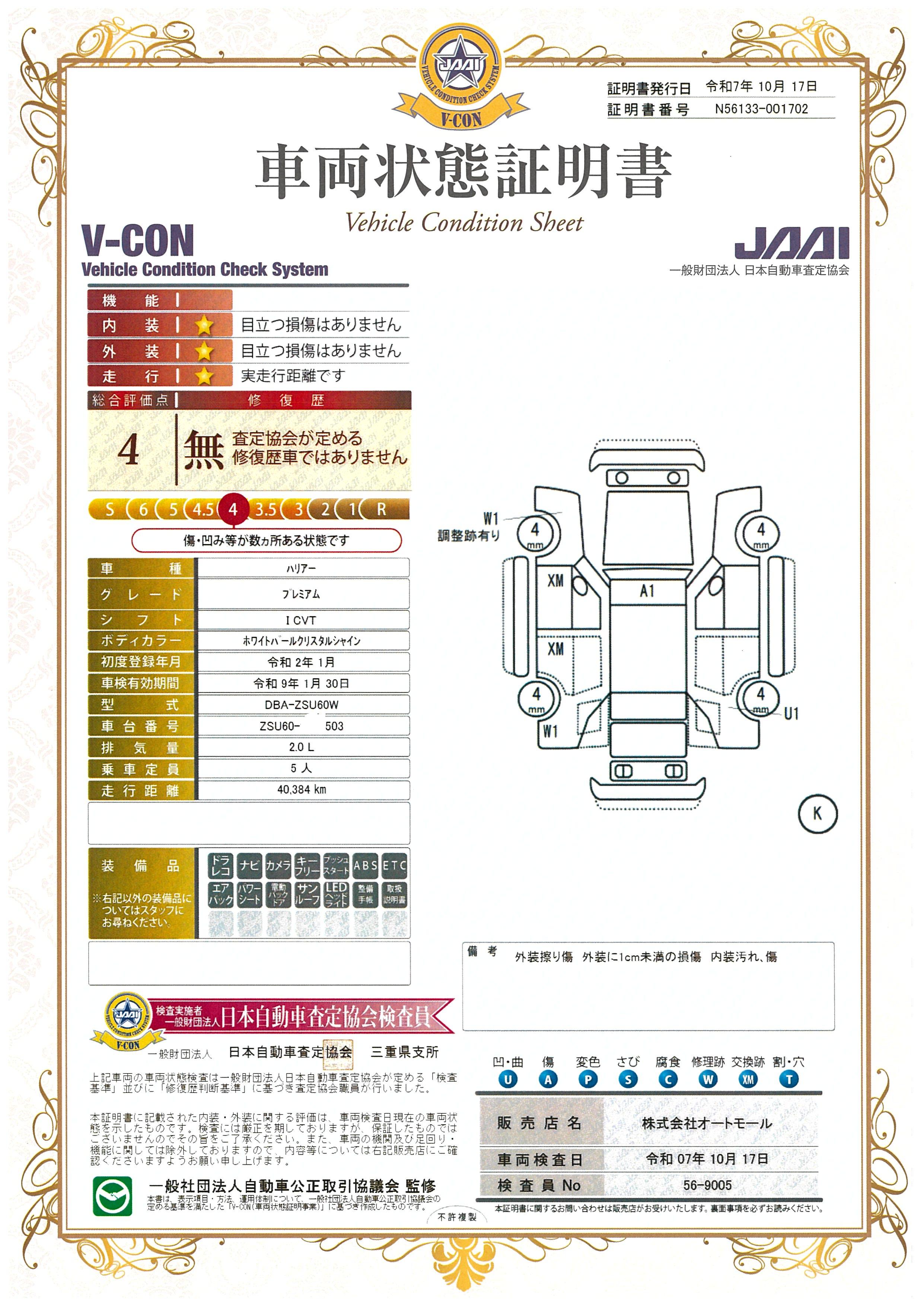 | 車両状態評価書 | ※クリックすると開きます![]() |