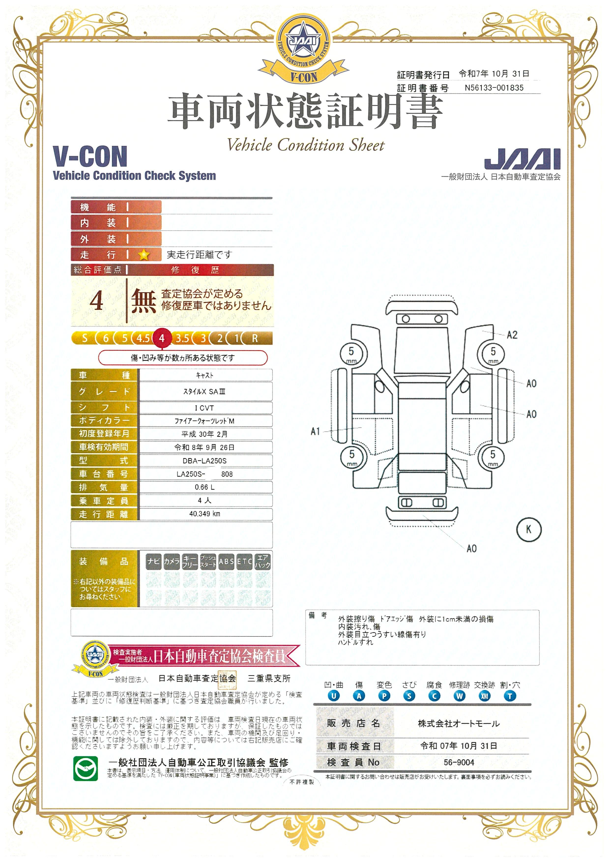 | 車両状態評価書 | ※クリックすると開きます![]() |