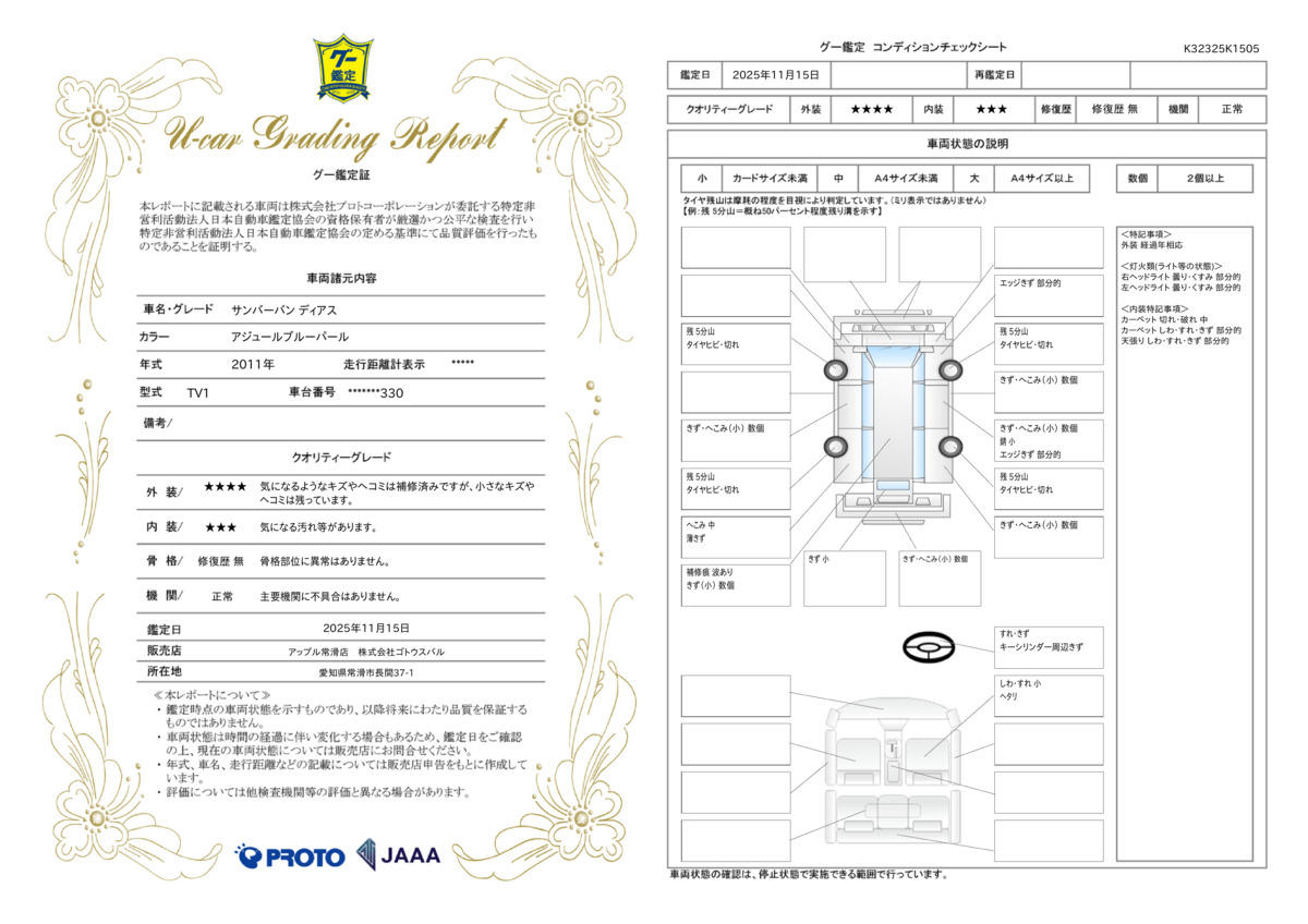 | 車両状態評価書 | ※クリックすると開きます![]() |