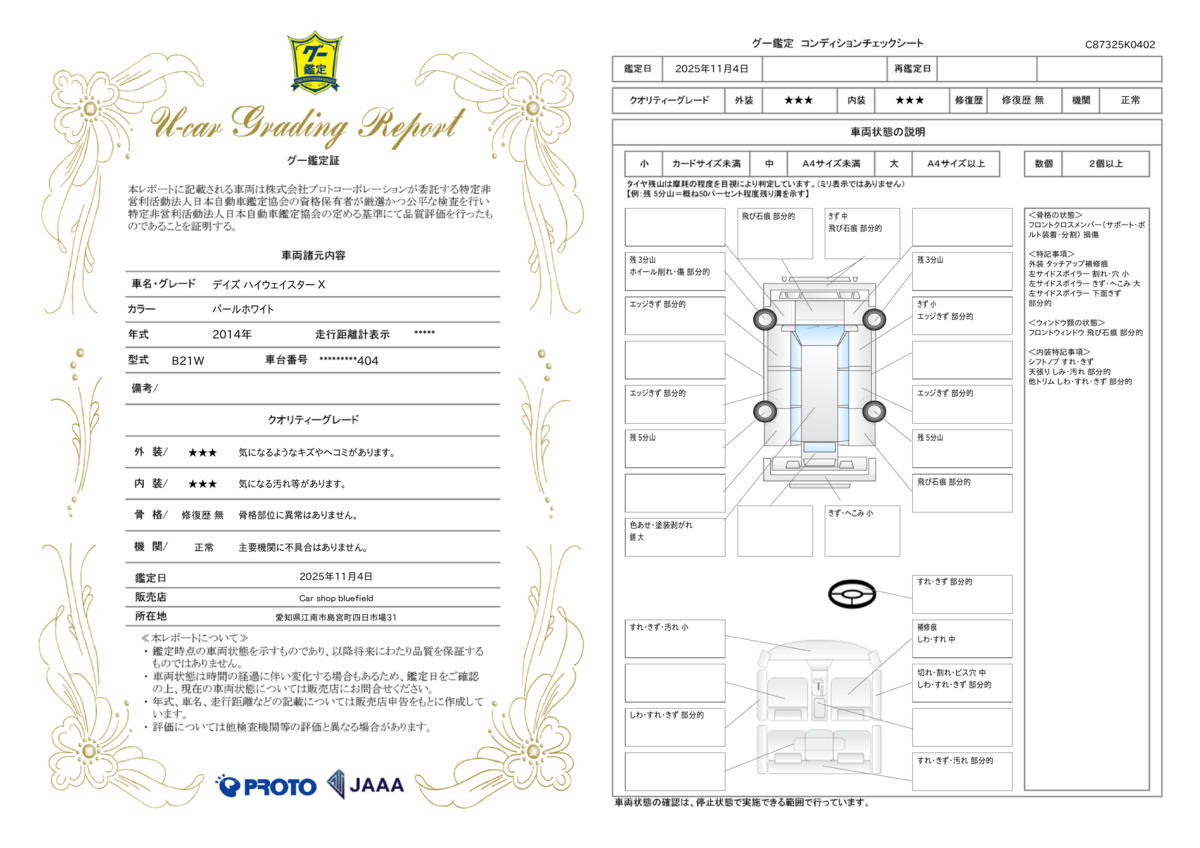 | 車両状態評価書 | ※クリックすると開きます![]() |