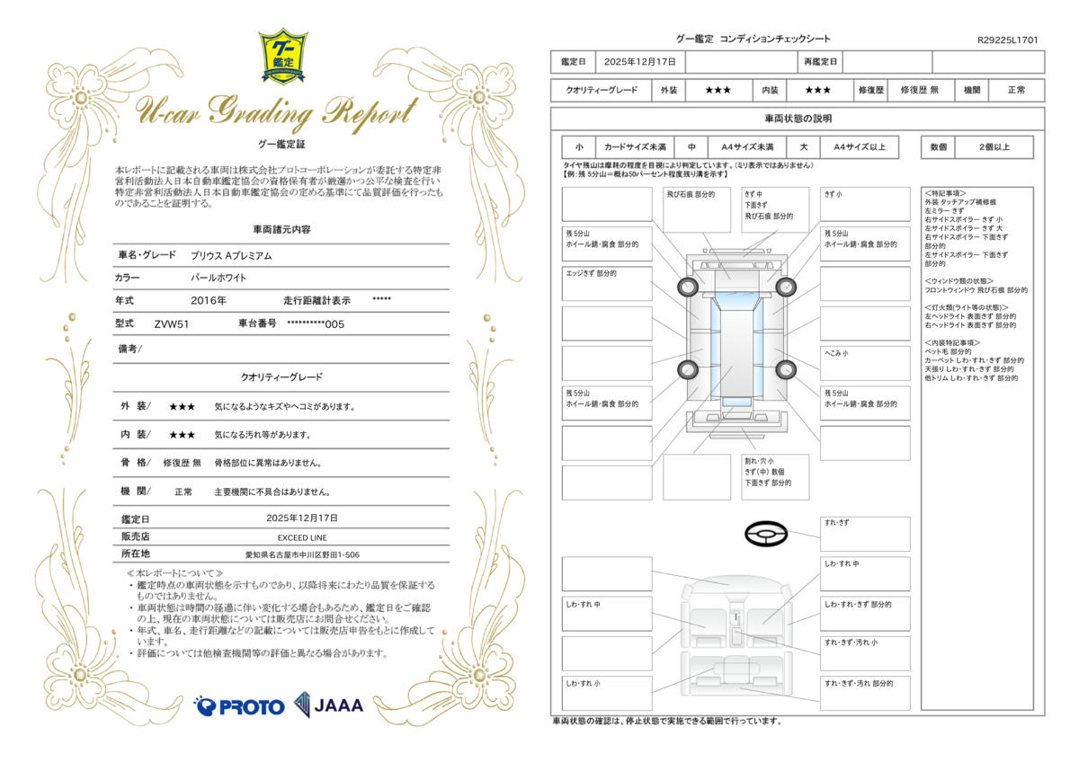 | 車両状態評価書 | ※クリックすると開きます![]() |