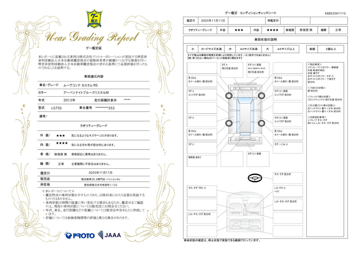 | 車両状態評価書 | ※クリックすると開きます![]() |