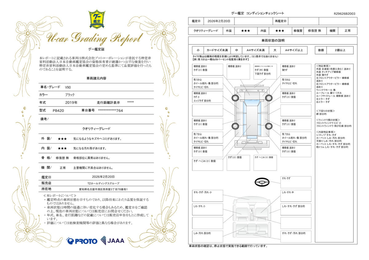 | 車両状態評価書 | ※クリックすると開きます![]() |