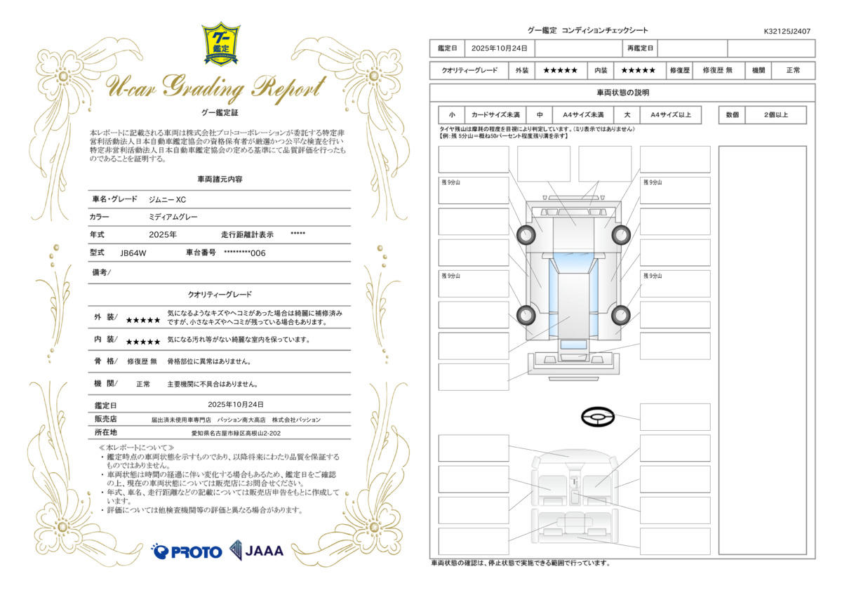 | 車両状態評価書 | ※クリックすると開きます![]() |