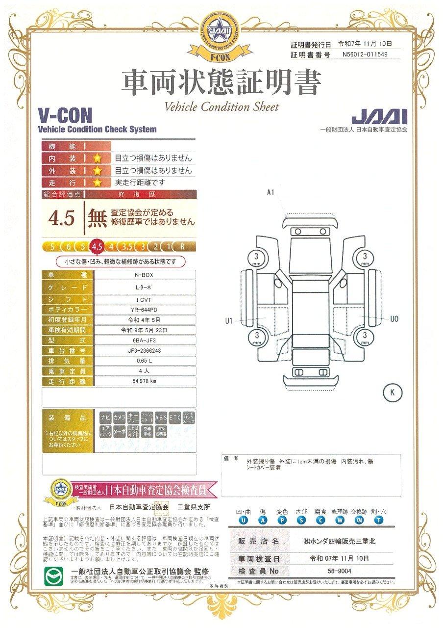 | 車両状態評価書 | ※クリックすると開きます![]() |