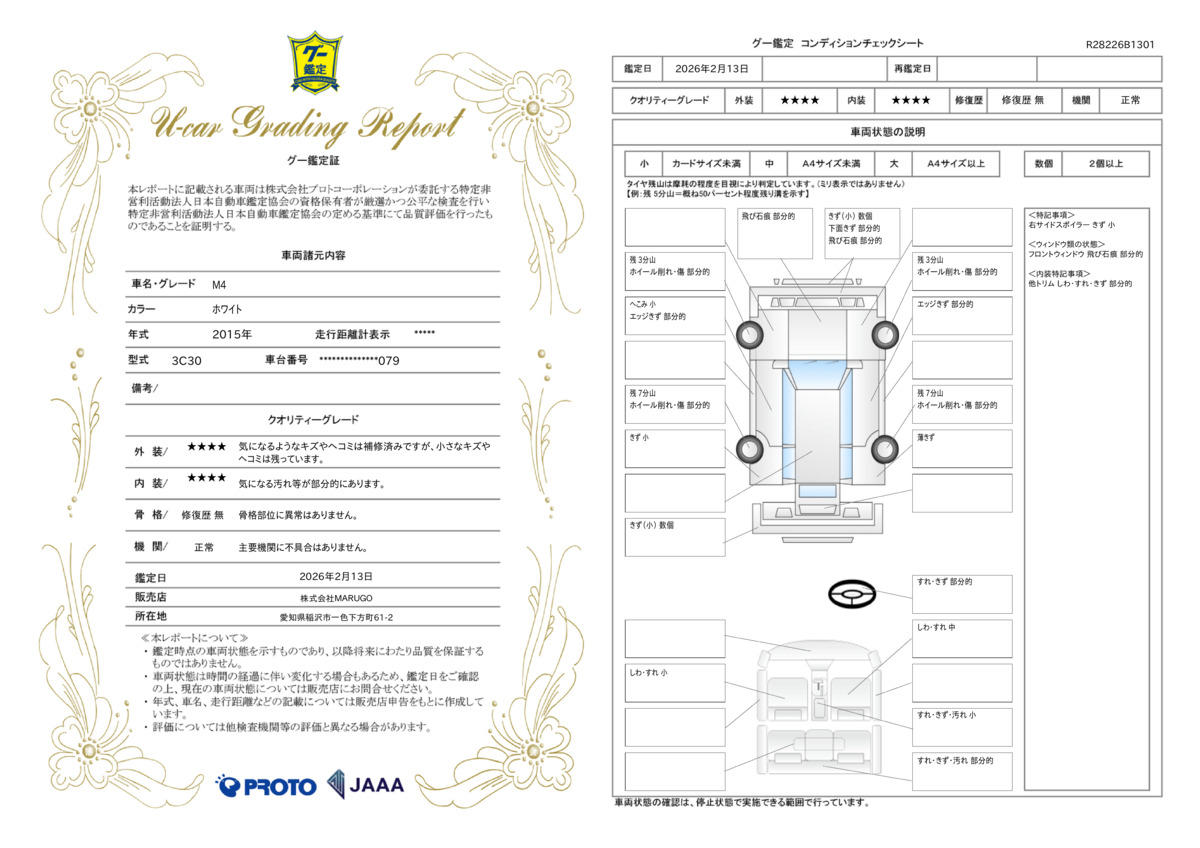 | 車両状態評価書 | ※クリックすると開きます![]() |