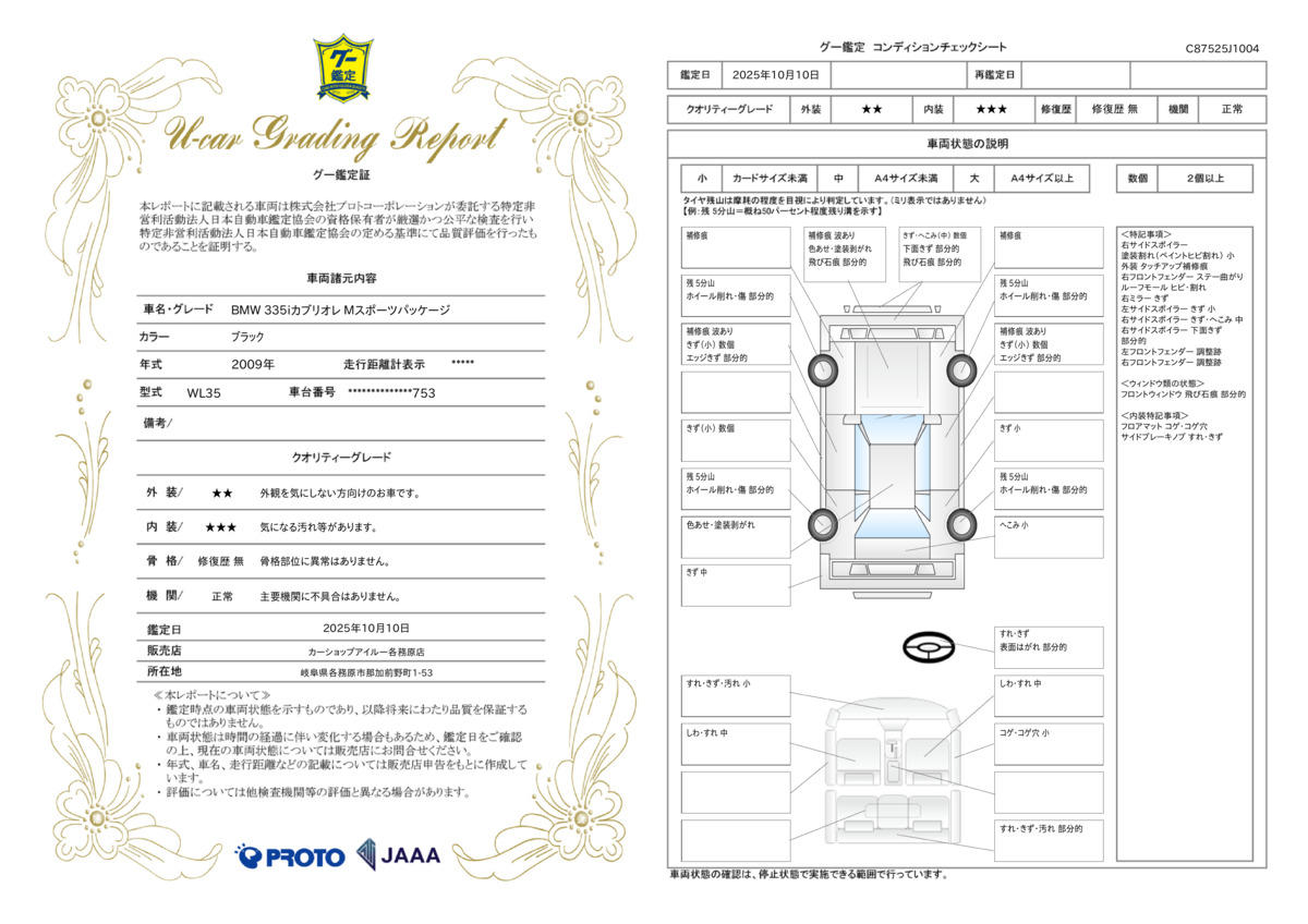 車両状態(3シリーズ 335iカブリオレ Mスポーツパッケージ)