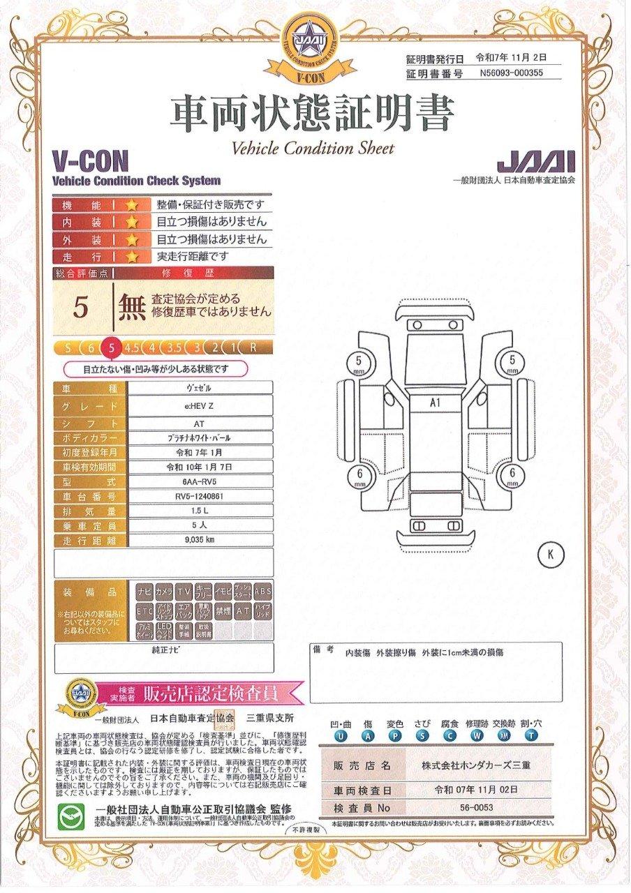 車両保証(ヴェゼル e:HEV Z:Honda Cars 三重 U-Select 津みなみ)